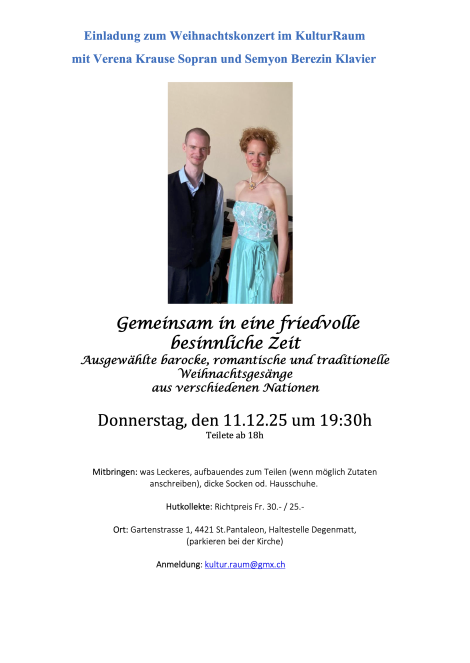 AdventskonzertSingkreis Schönenbuch Ltg. und Sopran Verena Krause unter Mitwirkung der Primarschulklasse 5 und 6 Ltg. Benjamin Amman Michelangelo Rinaldi, Klavier |